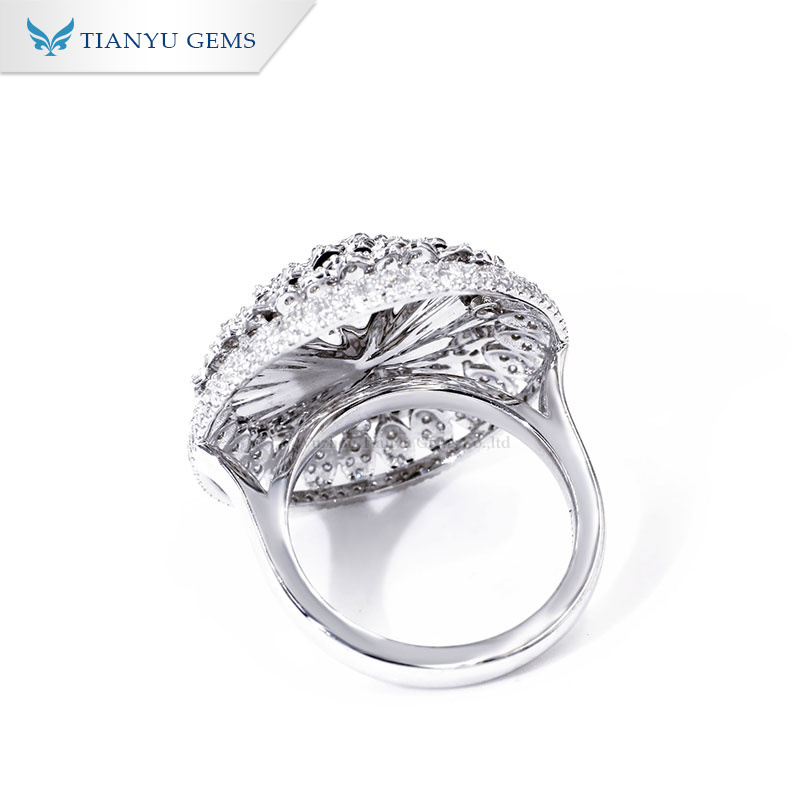 Round brilliant cut white moissanite full pave dome and white moissanite 14k white gold ring for women party